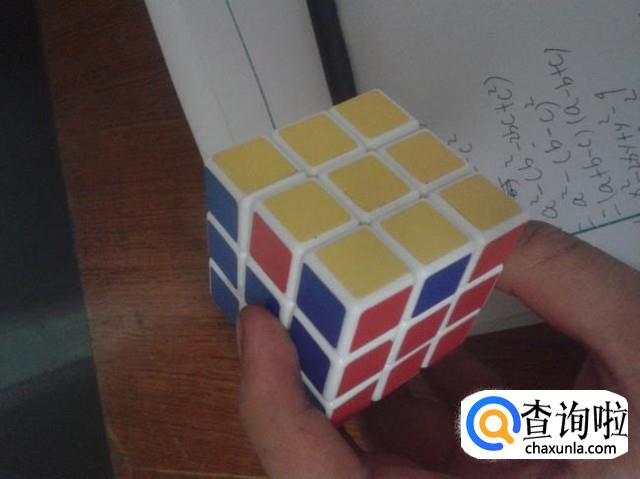 第二个公式,(蓝橙色为例)橙色对应,蓝色在左面就用公式:RUR'U'RUUR'U'RUUR'U'RUR'.就完成了。