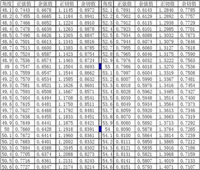 sin46=0.7193398003386511 sin47=0.7313537016191705 sin48=0.7431448254773941