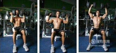 然后将哑铃直立推起,然后重复此动作,每天锻炼3组一组5次,这样子有利于上胸肌的锻炼。