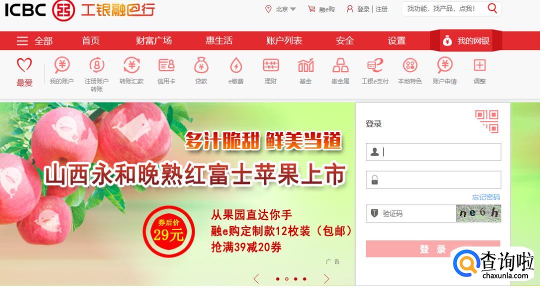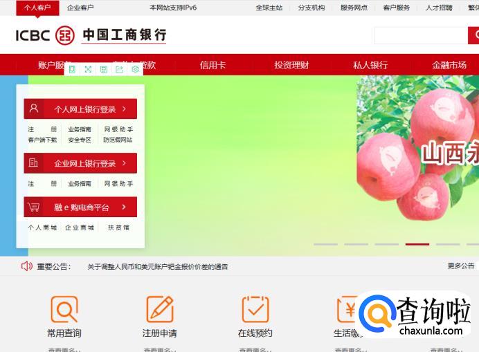 登录【中国工商银行官网】,点击【个人网上银行登录】。
