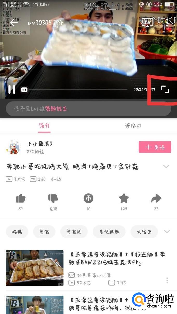 打开视频之后,点击右下角的放大视频即可。