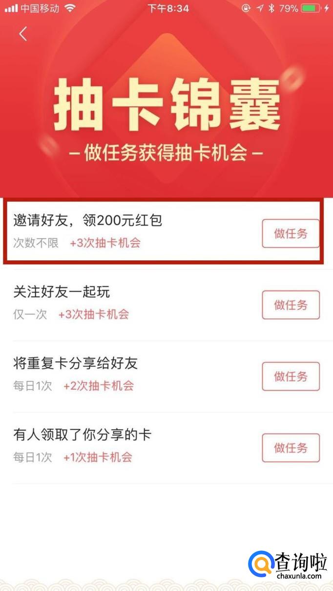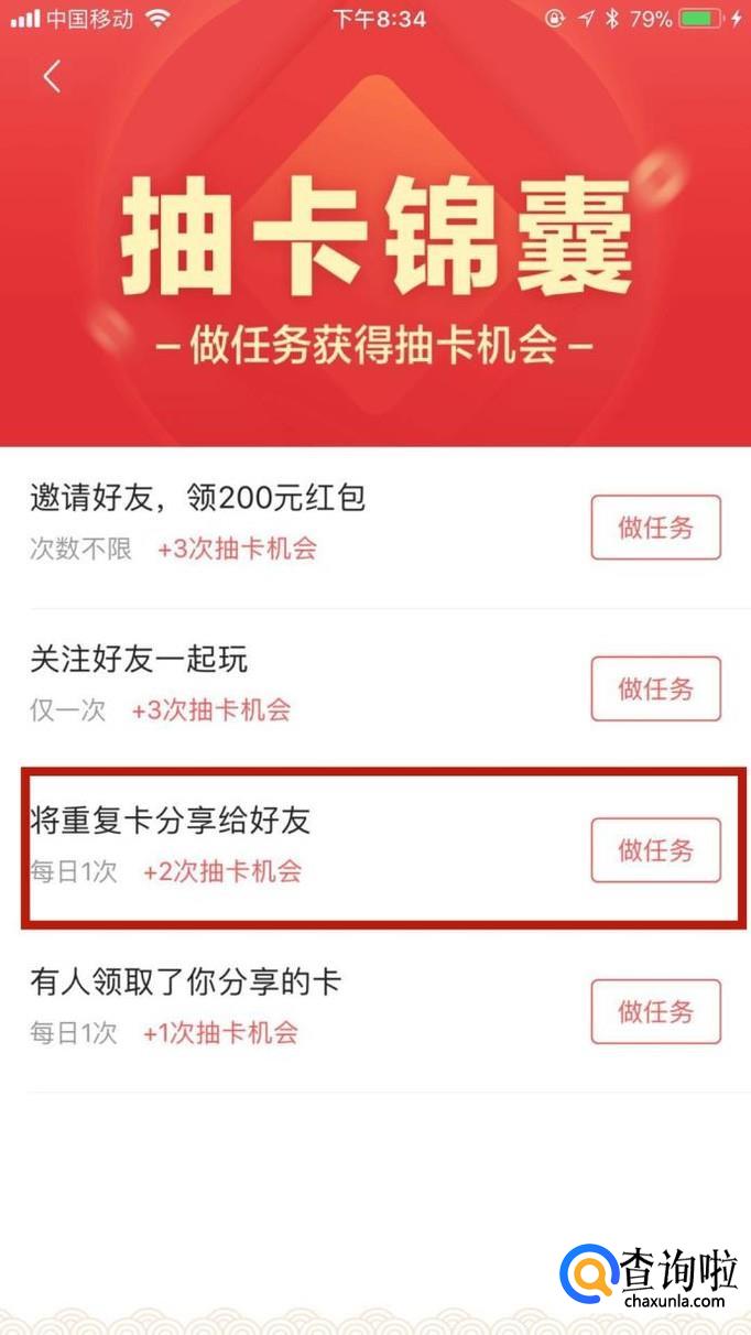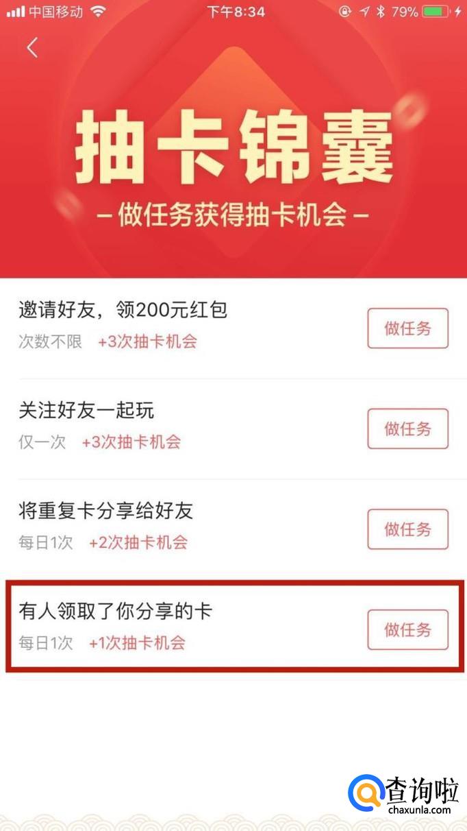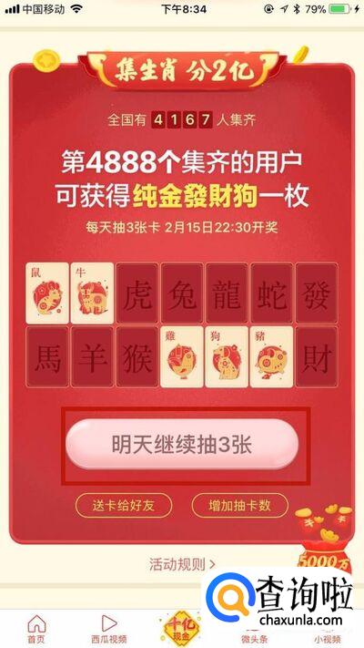 如果有人领取了你分享的生肖卡,那你就可以获得一次抽奖机会了。