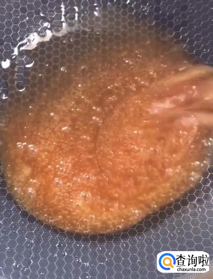然后我们开小火,不停的搅拌,慢慢的熬至变成焦糖色关火即可