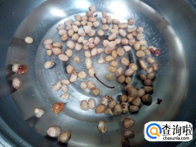 锅里放入水,放入花椒,八角,少许盐,放入花生米煮熟,盛出备用。