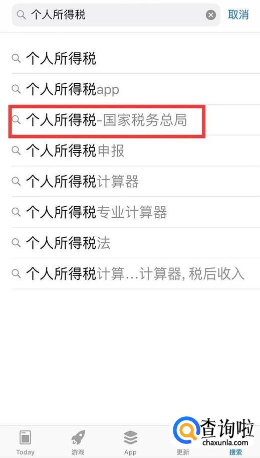 在搜索栏输入“个人所得税”,选择"个人所得税-国家税务总局”。