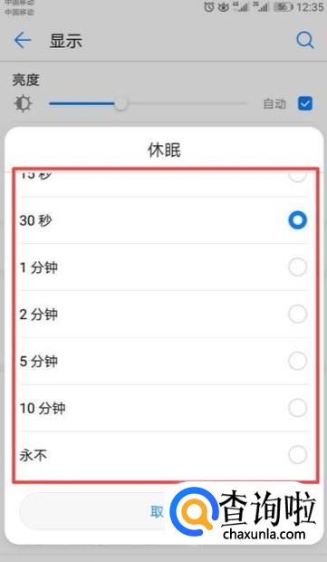 之后弹出的界面中就会出现很多锁屏时间的选项了,我们根据我们的需求点击选择一个选项就设置好了。