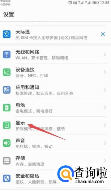 进入设置后,点击显示;
