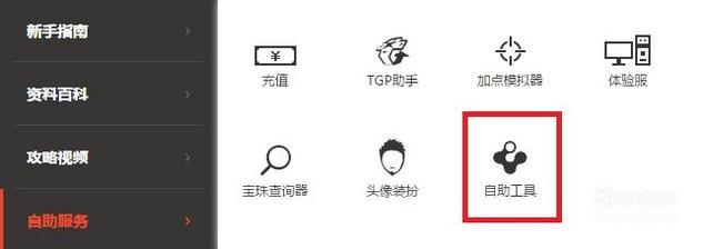 进入DNF官网后,下拉找到“自助服务”菜单,在菜单中点击“自助工具”选项。