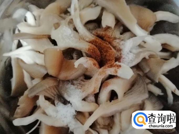 腌一会蘑菇后,加入适量五香粉和花椒面,搅拌均匀,让盐和五香粉均匀裹在蘑菇上,搅拌均匀待用。