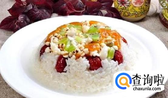 红枣莲子八宝饭,其主材是糯米、红枣、莲子等。其味道香甜软糯,老少皆宜。其寓意是希望新郎新娘早得贵子,家庭美满。