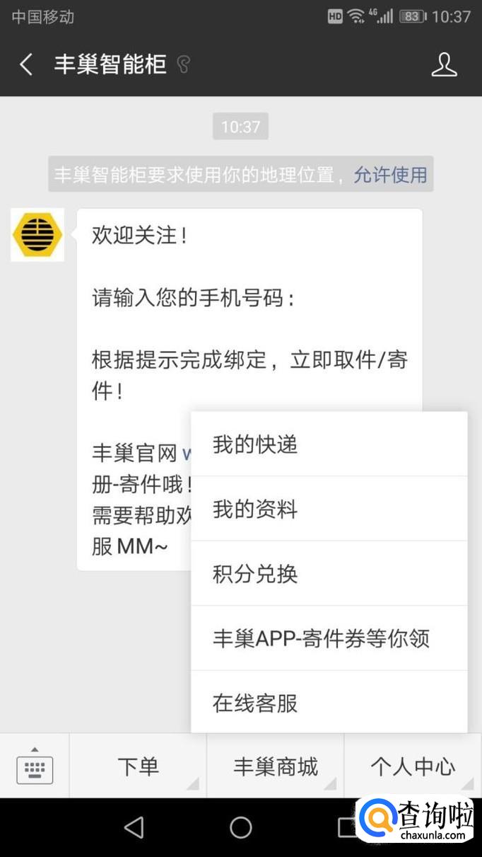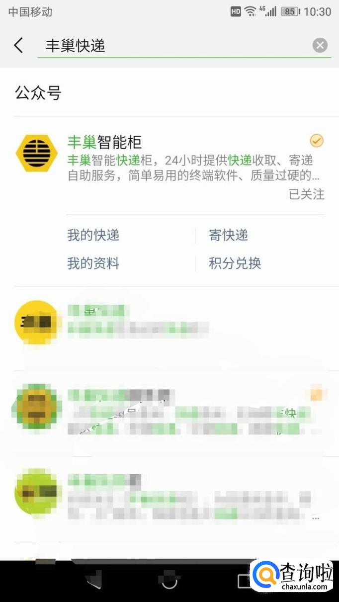 打开微信-添加朋友-公众号,搜索“丰巢快递柜”,并且关注进入。