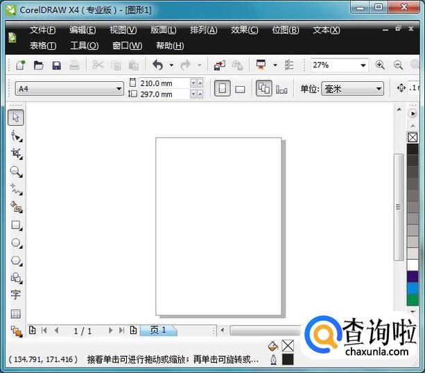 双击cdr的快捷图标将该软件打开,可以看到此时的界面是非常简洁看不到标尺,如图所示: