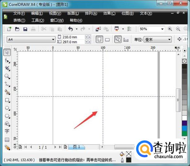 将标尺勾选后,界面内就出现了标尺,然后我们从标尺上拉出辅助线,如图所示:
