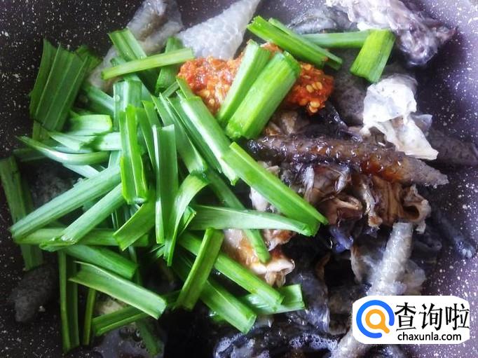 然后鱼皮回锅,加1勺酸梅紫苏辣椒酱,1勺生抽,1勺料酒,适量的香葱。