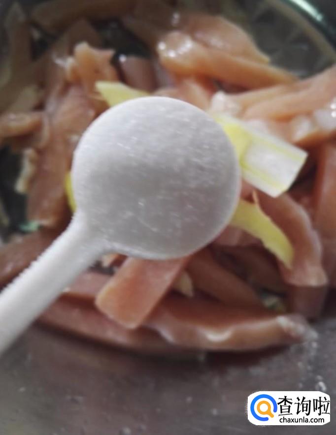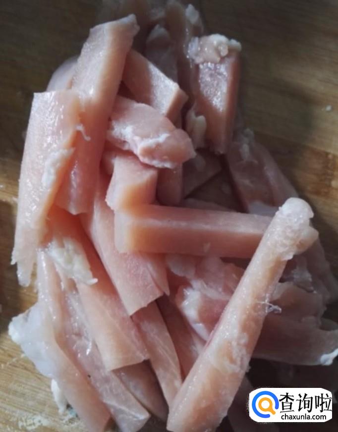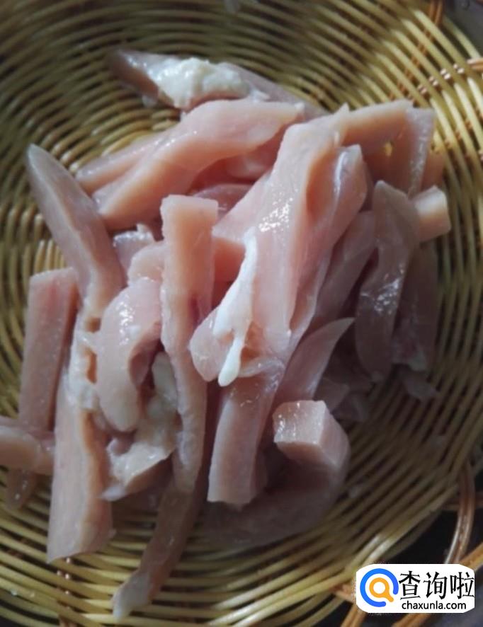 接着我们将切好的里脊肉放入水中清洗干净,控干水分备用