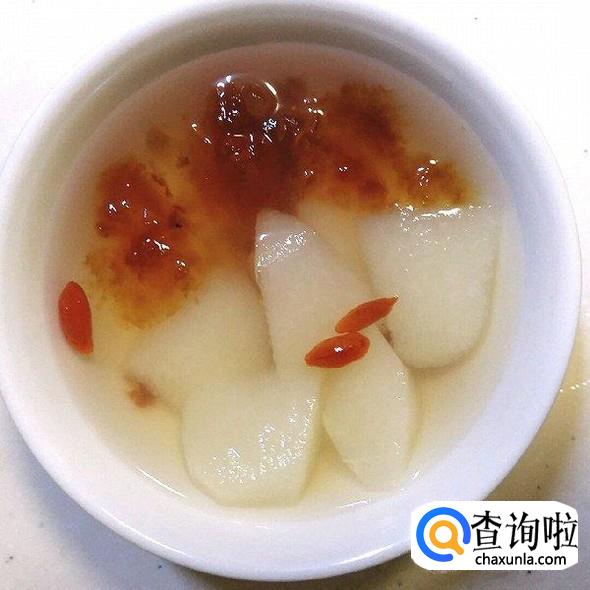 雪梨枸杞炖桃胶,桃胶提前一个晚上泡发,洗干净,挑去杂物,雪梨去皮去芯切小块,锅中倒入适量水,倒入桃胶,大火煮开小火煮30分钟,最后加入雪梨和枸杞再煮10分钟即可