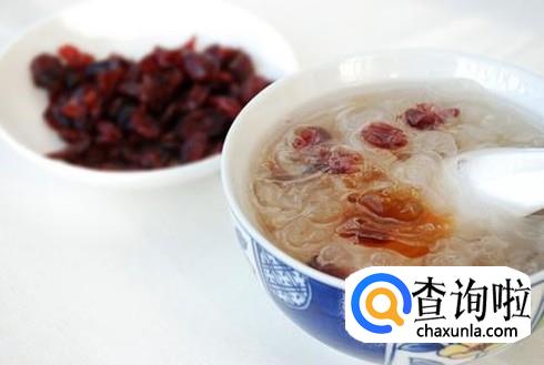 蔓越莓桃胶银耳羹,桃胶适量,银耳适量,两种材料提前一个晚上泡发,洗干净,挑去杂物,银耳把黄色根部去掉之后倒入炖盅,加入适量水,小火慢炖2个小时,最后5分钟加入蔓越莓和冰糖即可。