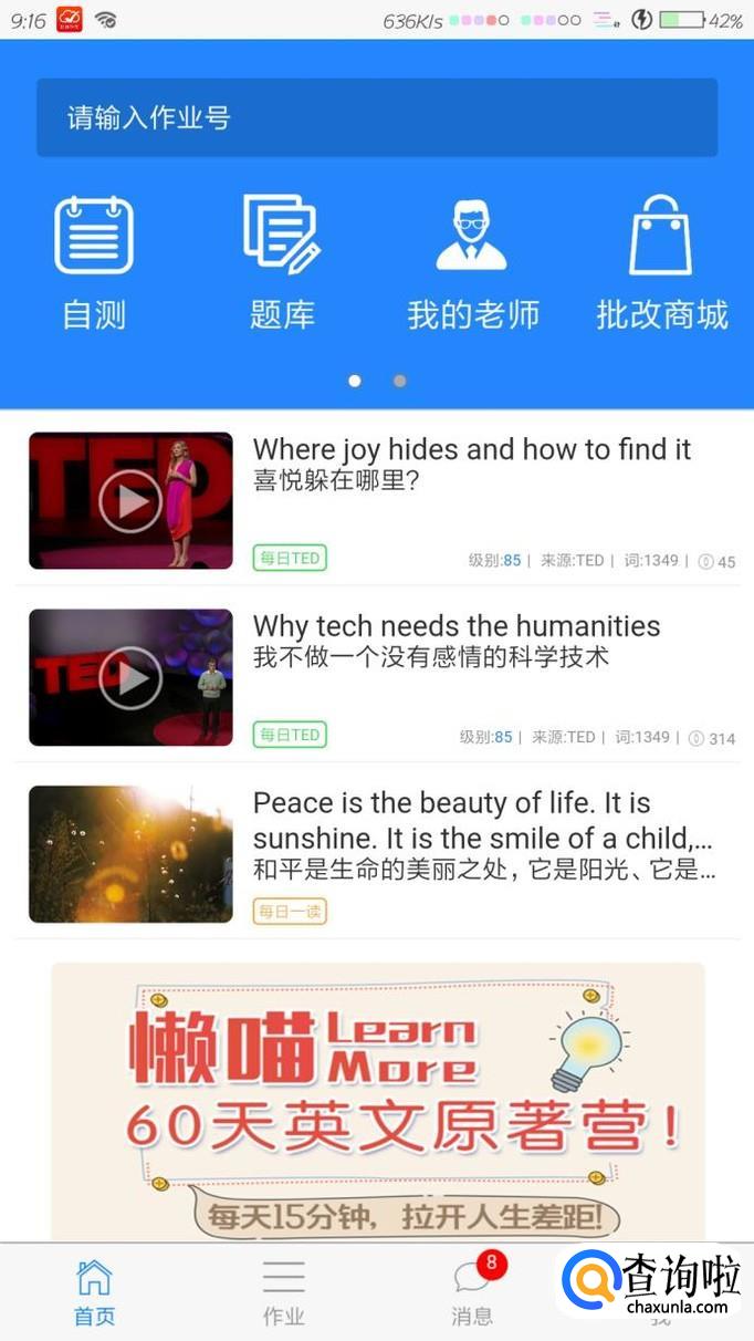 进入主界面之后可以选择在顶端输入老师布置的作文号,或者老师的信息来写作文。