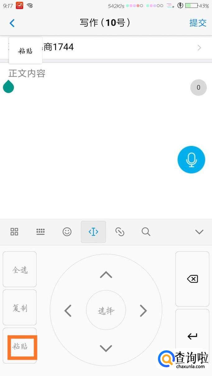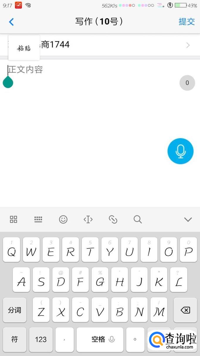 找到自己要写的作文题目以后,在输入框长按空白处,如果有“粘贴”键,点击即可粘贴复制内容。