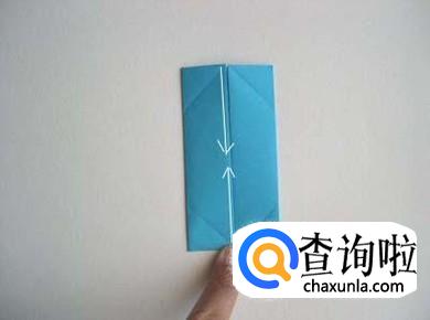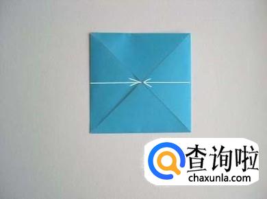 用山形痕作为参考线,将四个角都对折到中间的圆点处。然后按照图示中的箭头将左右两边同时向内进行对折。