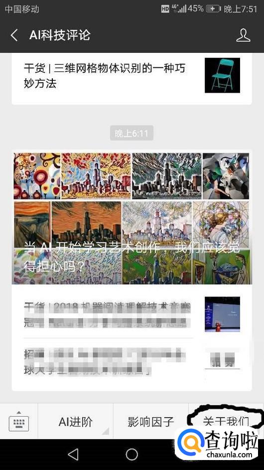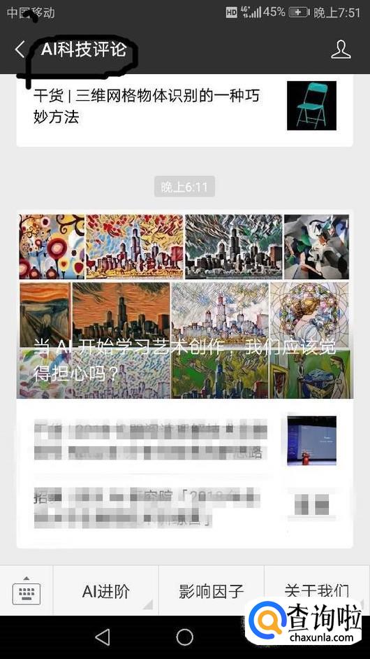 首先打开你要获取的微信公众号订阅号,如图。