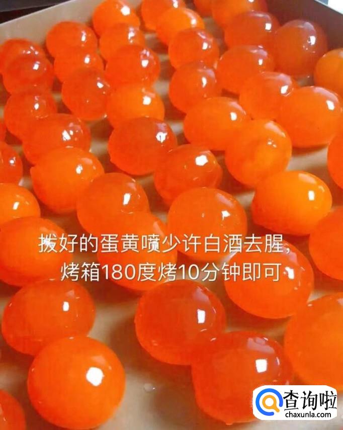 接着把剥好的蛋黄放入烤箱并加入适量的白酒,烤箱开180°和烤十分钟,如下图所示。