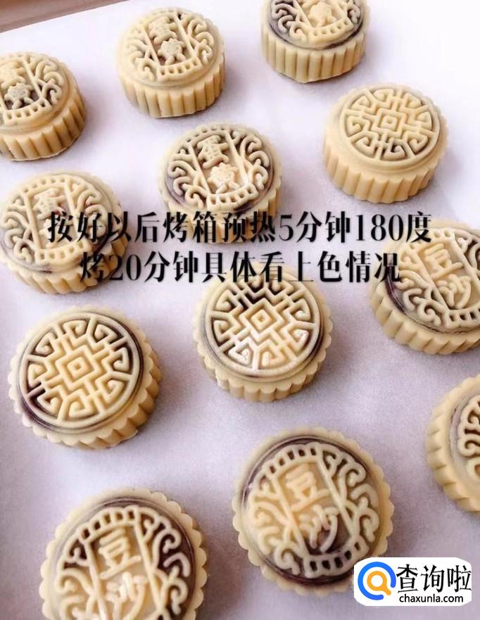 然后把做好的月饼放入烤箱,烤箱预热五分钟,开180°的火烤20分钟,如下图所示。