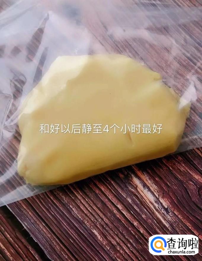 然后把和好的面团放入保鲜袋,醒发四个小时左右,如下图所示。
