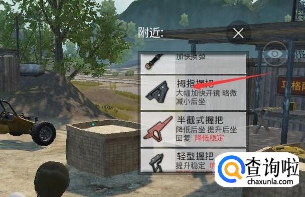 另外还有一个拇指握把,这个握把的好处就是能够增快开镜的速度,所以大家在选择远程作战的时候,可以用这个握把。