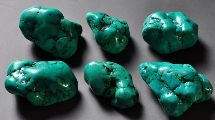 4、手触感。绿松石吸水性强,因此摸上去会有些粘手,但又不会太粘,但如果绿松石摸上去感觉跟摸双面胶差不多,那说明这样的绿松石是注过胶的。