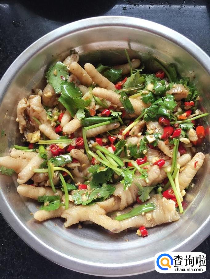 鸡爪 一斤 小米椒 野山椒 香菜 盐 醋 耗油 大蒜 生姜 料酒