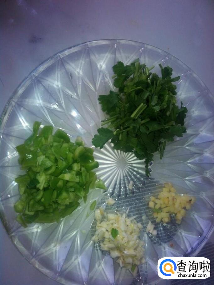 在一个比较大的盆或碗里加入,切成沫的小米辣,野山椒(加入的多少根据个人口味),盐(盐需要多加点方便入味),香菜,蒜泥拌匀