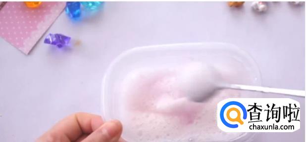 最后加入洗衣液,用勺子混合均匀直至起泡胶成型。