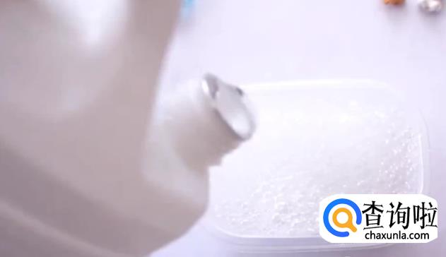 首先取一个干净的带盖的容器(建议用一次性的盒子);将洗洁精挤一些到容器中。