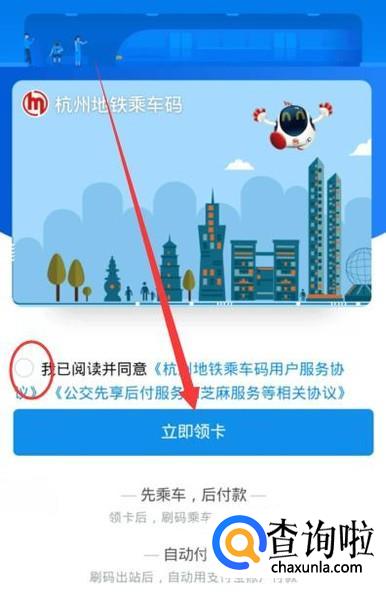 进入之后,勾选图示位置,点击“立即领卡”即可,如图所示。