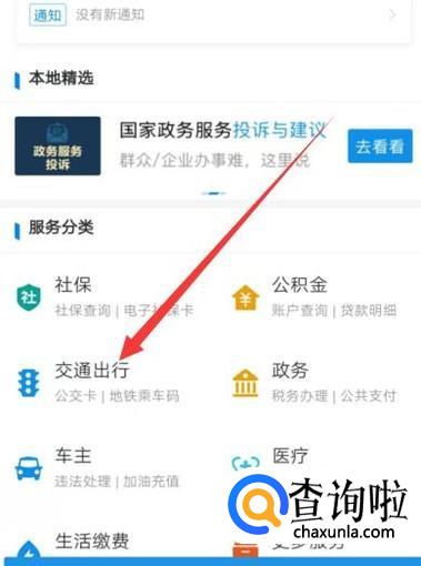 进入之后,点击“交通出行”,进入下一页面,如图所示。