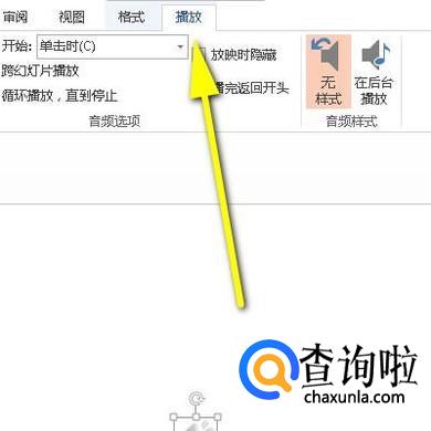 要设置音频播放;我们要在“播放”选项卡中设置。所以,鼠标点开“播放”选项卡。