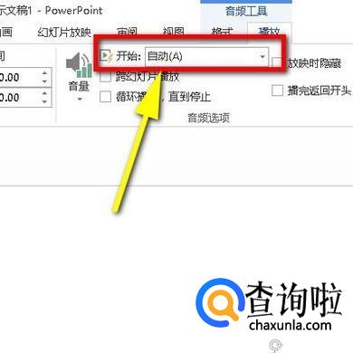 在下方展开的内容中,把“开始”的方式修改为“自动”;那么,在播放幻灯片时,音频就会自动播放的了。