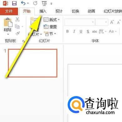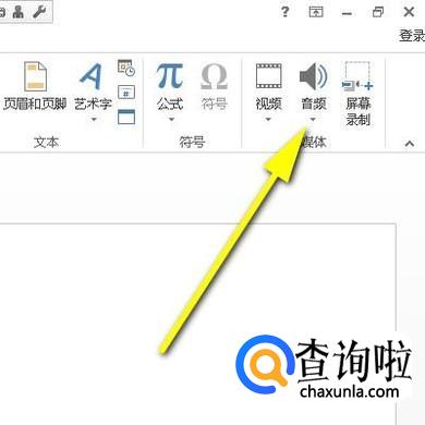 启动PPT后,新建空白幻灯片;鼠标再移到菜单栏这里点击“插入”选项卡。下面即展开了与之相关的内空。鼠标再移动界面的右上方。点击“音频”下拉按钮。