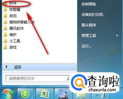 点击电脑左下角的“开始”图标,然后再点击“附件”文件夹。