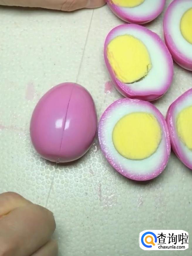 分开两半,教大家一个小妙招,用干净的线两手拉着,鸡蛋放好,用线拉开即可。