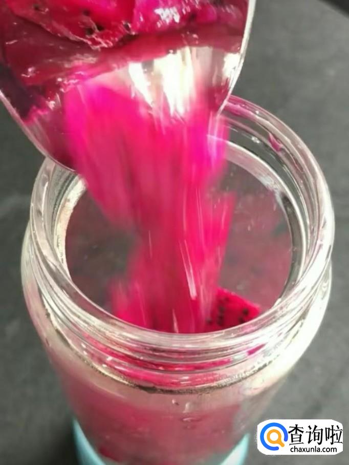 榨汁杯中放入红心火龙果,加入一点点水,进行榨汁。