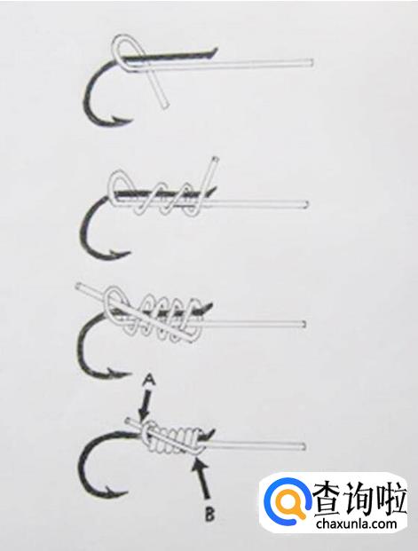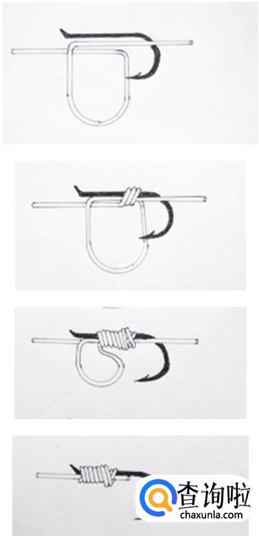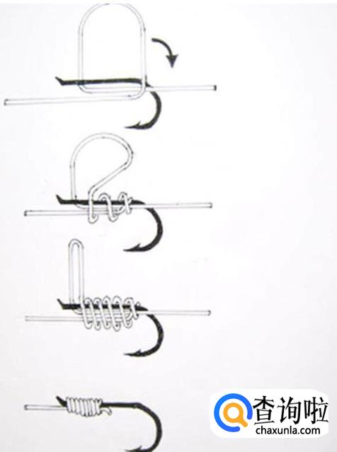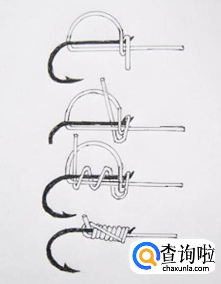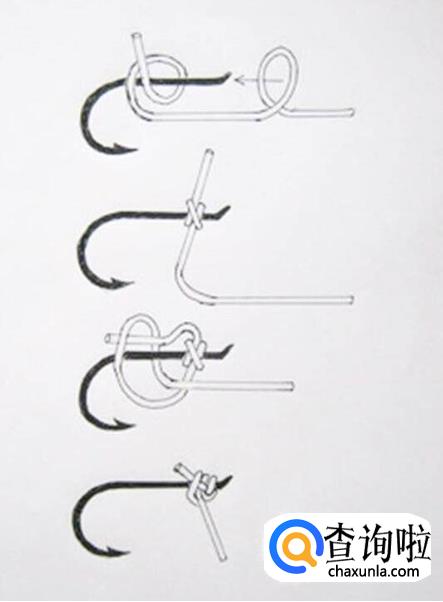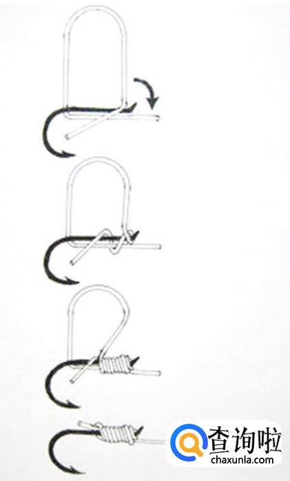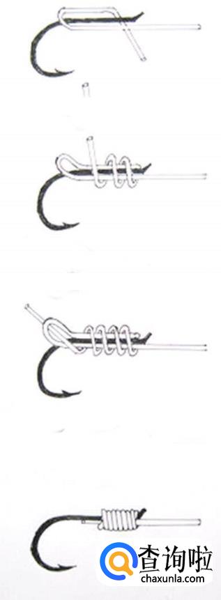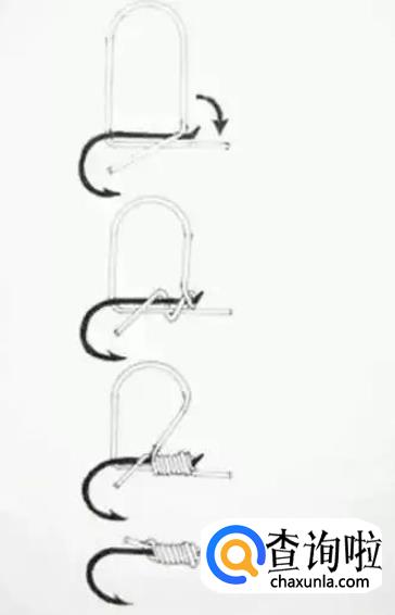 绑法4,准备好鱼钩,绳子按照如图所示的绑法。