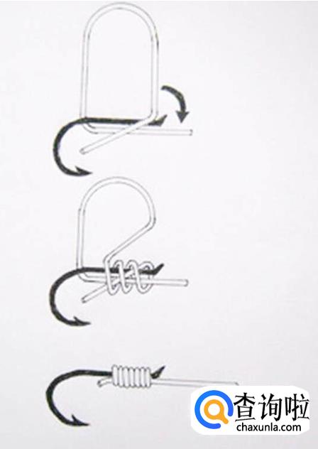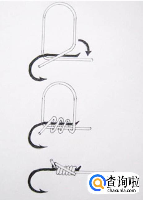 绑法3,准备好鱼钩,绳子按照如图所示的绑法。