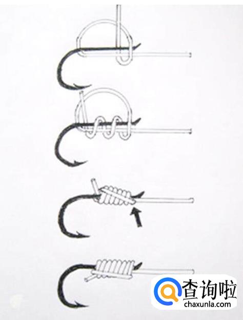 绑法8,准备好鱼钩,绳子按照如图所示的绑法。