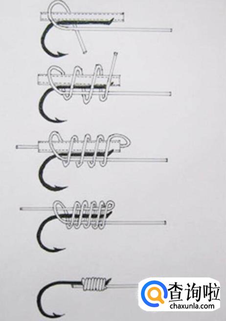 绑法5,准备好鱼钩,绳子按照如图所示的绑法。
