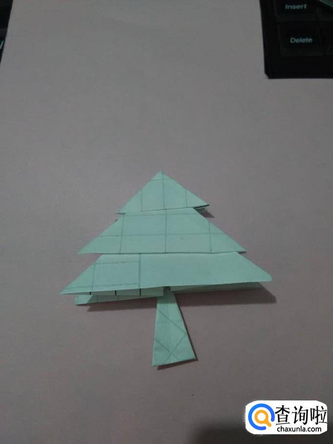 再将下面的角向上方折,树干就折好了。