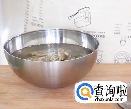 把蛏子倒入加了盐的清水中浸泡4个小时,隔两个小时换一次水