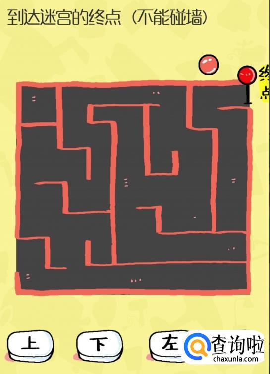 45关,你不让自己的脑子转一个弯可能就做不出这个,我们绕着迷宫的外围把红点移动到终点就可以了。