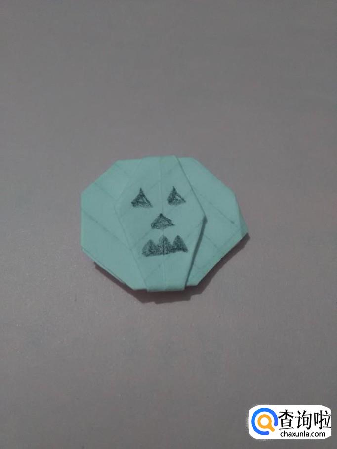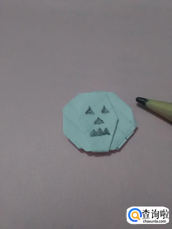 用笔在纸上画六个三角形,并涂上黑色,表示眼睛、鼻子和嘴,万圣节南瓜就折好了。
